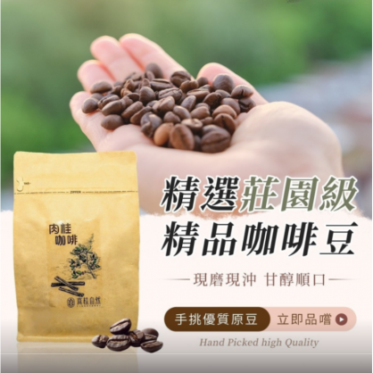 製成風味獨特口感甘甜的肉桂咖啡 半磅裝的原豆,粒粒看得見,優質手挑豆看得到最安心,